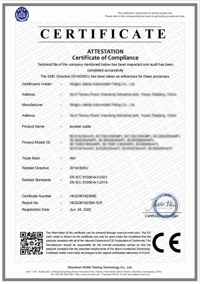 • Термичка безбедност: Сите кабли себезбедносно тестирано за пренапони со висока струја, спречување на прегревање при повеќекратни обиди за палење - критично барање заавтомобилрезервен пазар.