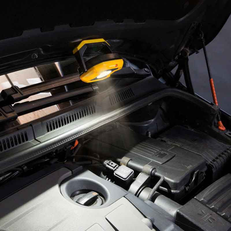 ・Извор на светлина COB со висока осветленост:Високолумен, еднообразен рефлектор, идеален за поправки и инспекции.