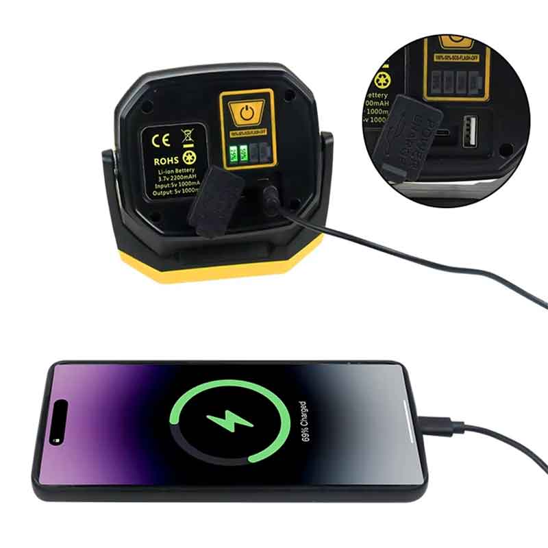 О: Да. Приклучокот за USB-C поддржува и влез (полнење на работното светло) и излез (делува како банка за напојување за полнење мобилни уреди).